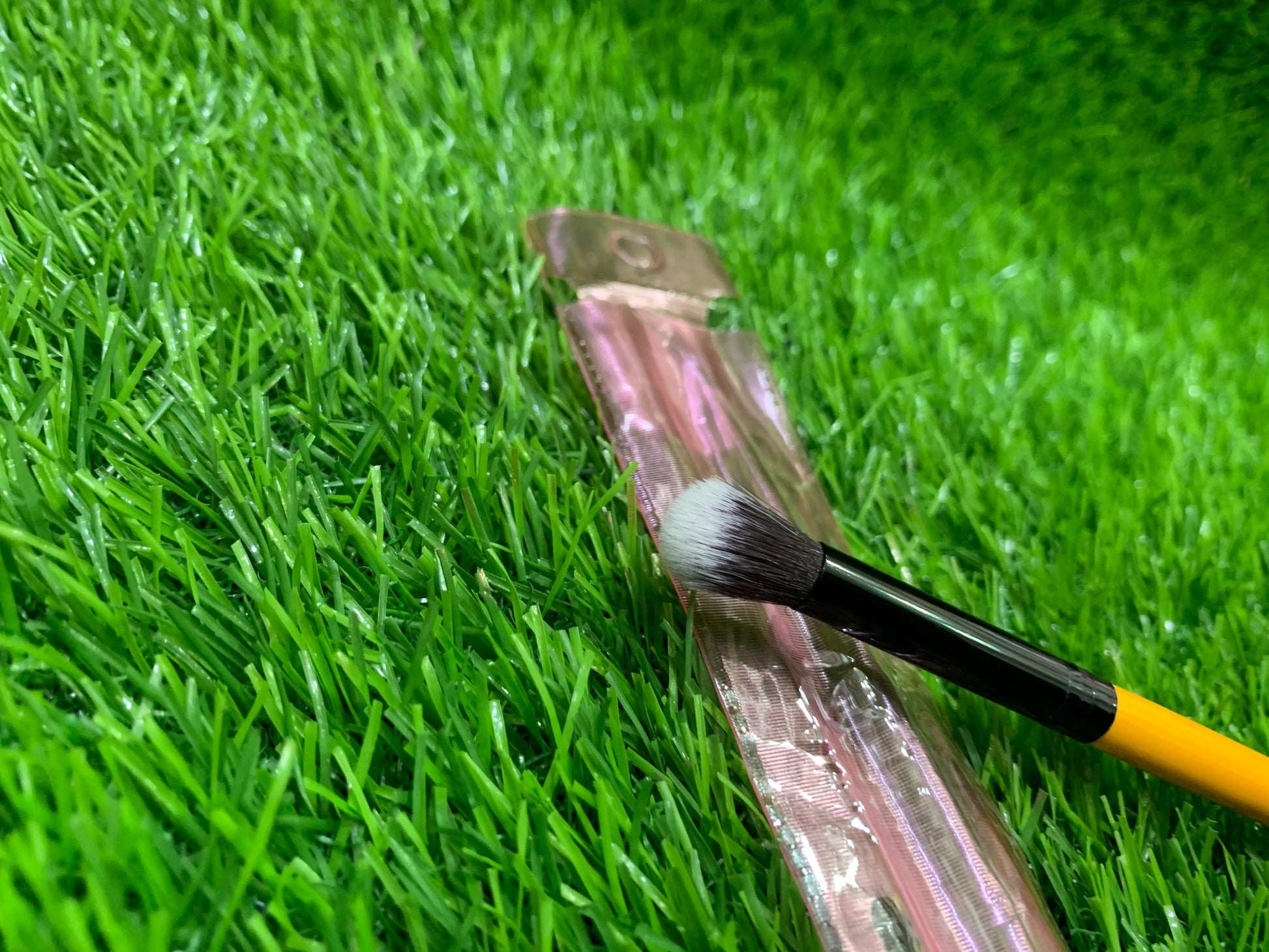 A makeup brush is a tool with bristles, used for the application of makeup or face painting. The bristles may be made out of natural or synthetic materials, while the handle is usually made out of plastic or wood. When cosmeticsare applied using the appropriate brush, they blend better into the skin
