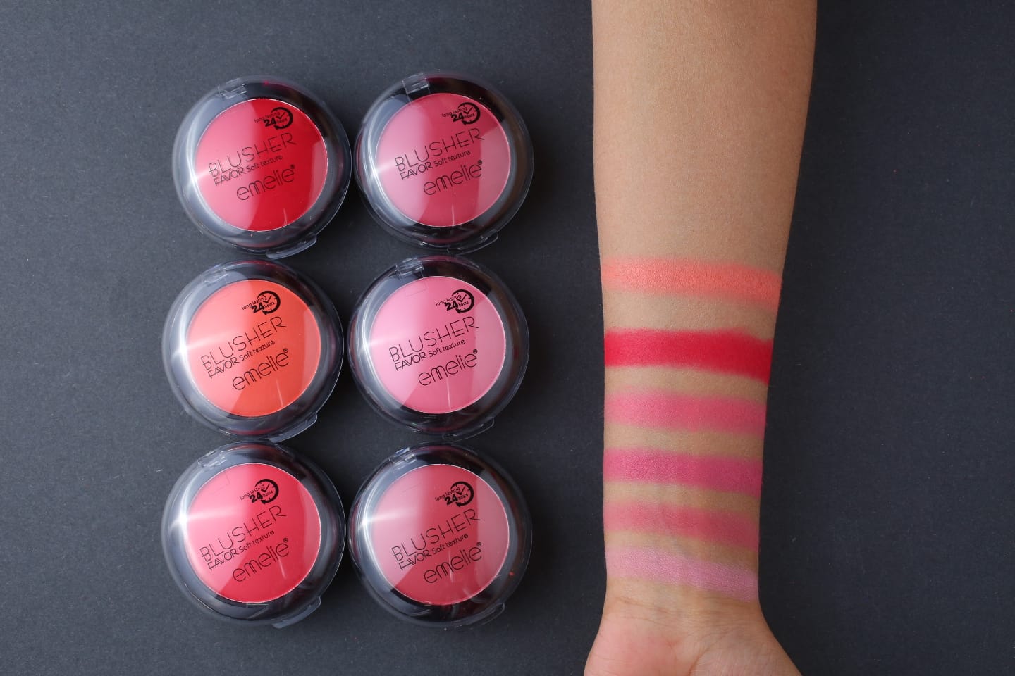 Blush on is a type of cosmetic product that reflects light. Often used for contouring, it can be applied to the face or other parts of the body to brighten the skin on a given area, create the perception of depth and angles.