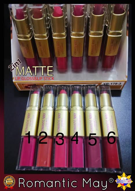ROMANTIC MAY 2IN1 LIPSTICK PLUS LIPGLOSS PACK OF 6